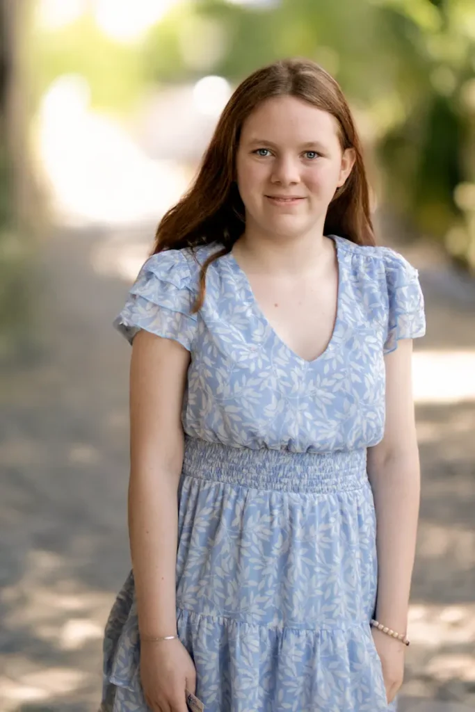 Kora is social and talkative, making friends easily. She does best in a home where she feels safe and supported, with patience, reassurance, and consistency. She’s polite, enjoys being helpful, and knows exactly what she likes when it comes to food—Chick-fil-A, spicy burgers, regular burgers, fries, and Texas Roadhouse rolls. In her downtime, she likes to watch movies, with IT and Fear Street among her favorites.